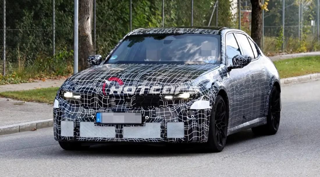 从谍照中可见,新车虽身披厚重伪装,但M家族的硬核基因已显露无疑。前脸摆脱了现款争议较大的超大双肾格栅,转而采用新世代车型标志性的修长横向格栅,与两侧双LED大灯形成更协调的视觉比例。尽管前保险杠被塑料面板覆盖,但下方隐约可见的大尺寸进气口,暗示着其为高性能发动机预留的散热通道,这也是燃油版与电动版最核心的外观区隔之一。