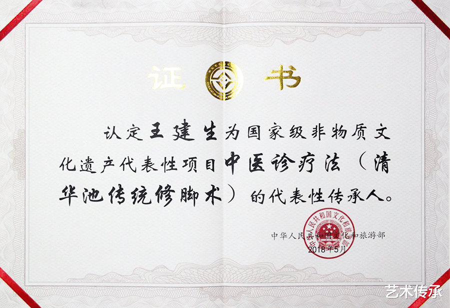 在单位领导正确决策下,王建生和全体修脚技师们的努力下,使企业扭亏为盈,年均递增10%,每天接待10多人至20多人左右,忙时要3,40人左右,成为北京市著名商标,更让传统修脚术焕发了新的生机。2014年,清华池传统修脚术被列入第四批国家级非物质文化遗产代表性项目名录,王建生也成为该项目的代表性传承人。这份荣誉,既是对他个人技艺的认可,更是对他推动非遗技艺时代新生的最高褒奖。