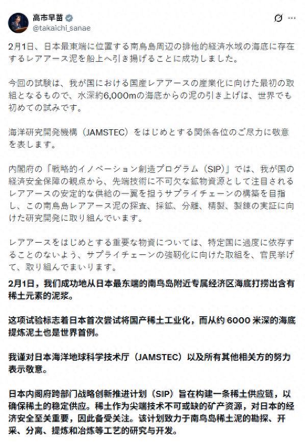 这事在日本国内,一下子就被捧上了天,毕竟,这可是全世界头一回在这么深的海底搞稀土开采试验。
