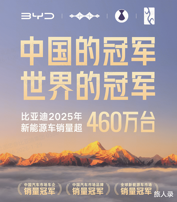 2025 年中国汽车产销突破 3400 万辆,连续多年稳居全球第一。以比亚迪为代表的中国品牌,正从行业引领迈向标准定义。460 万销量背后,是技术、产品与全球化布局的协同发力,未来比亚迪将持续以冠军实力,推动中国汽车产业在全球市场实现更高质量的发展。