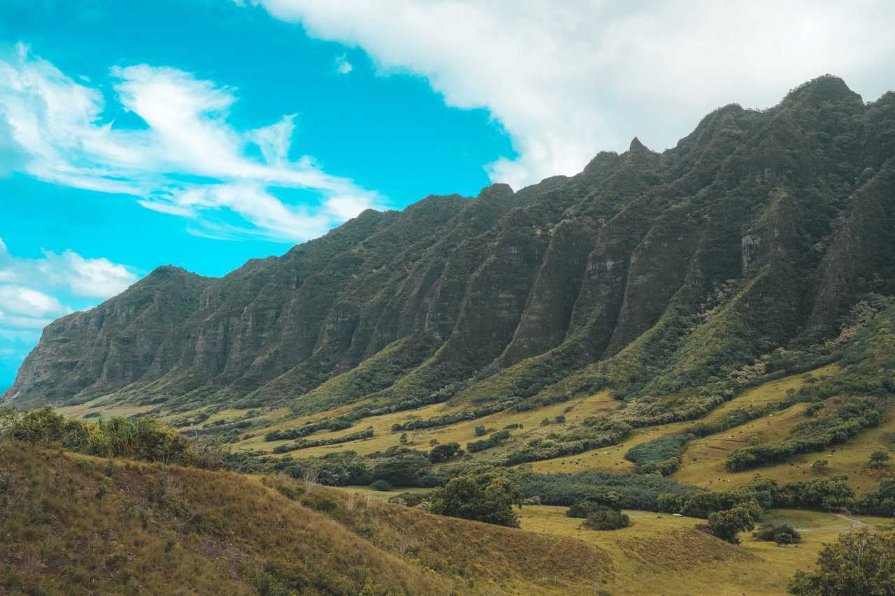 古兰尼牧场顶能看到状如恐龙爪的山脉,这很“夏威夷”