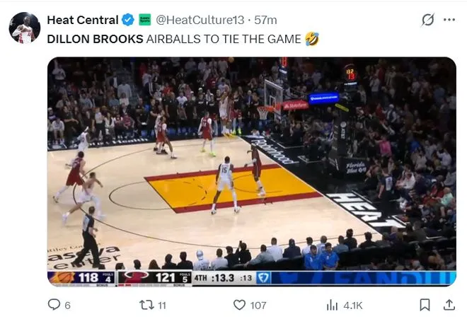 北京时间1月14日,NBA常规赛,热火以127-121险胜太阳。这场比赛是超长拉锯战,两队鏖战至最后一刻,终场前48秒鲍威尔的三分球命中才改变了局势,格雷森-阿伦三分绝平不中太阳拼下了前场篮板 ,狄龙的绝平三分继续不中还吃了一个一级恶意犯规,比赛走向完结。