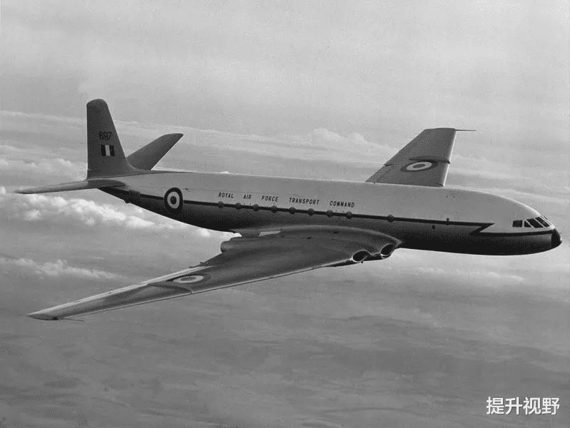 这是世界上第一款喷气式客机。在当时,美国的波音和道格拉斯还在造那些轰隆隆响、震得人牙齿发麻的螺旋桨飞机。而彗星号,它飞得更高,飞得更快,而且飞得极其平稳。
