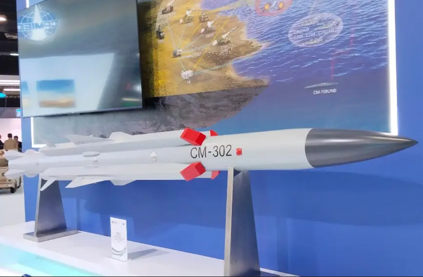 CM0-302反舰导弹,其实就是大名鼎鼎的鹰击12反舰导弹的外贸版,曾经在珠海航展公开亮相,并参与了其他国际防务展,也曾打上YJ-12E反舰导弹的标志。