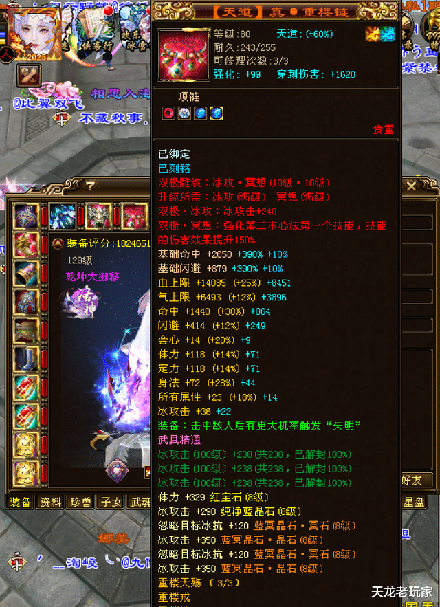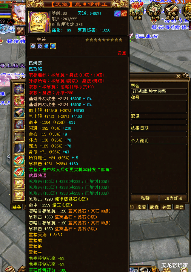 血量243万,蓝量16万,命中18.8万,闪避5.8万,会心攻击3454,会心防御1092,主冰攻击33123,减冰抗4052!