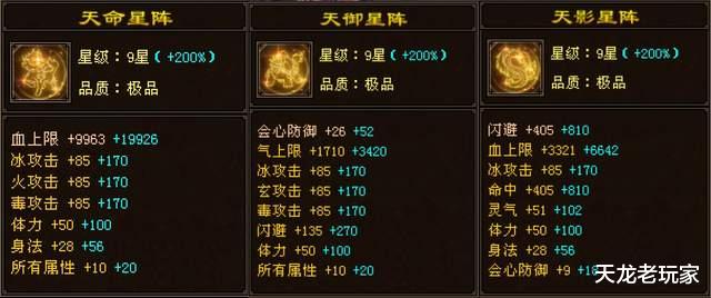 除了天影阵之外,其他两个星阵的词条堪称完美!