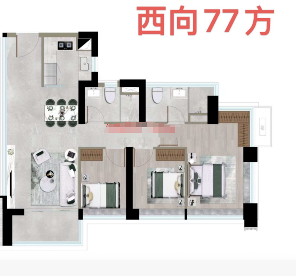 现在加推的 77 平户型,使用率 136%,堪比旧规 103 平,总价 300-320 万。唯一的缺点是交通,离地铁站有点远,但如果不依赖地铁通勤,这个盘的居住舒适度还是很能打的。