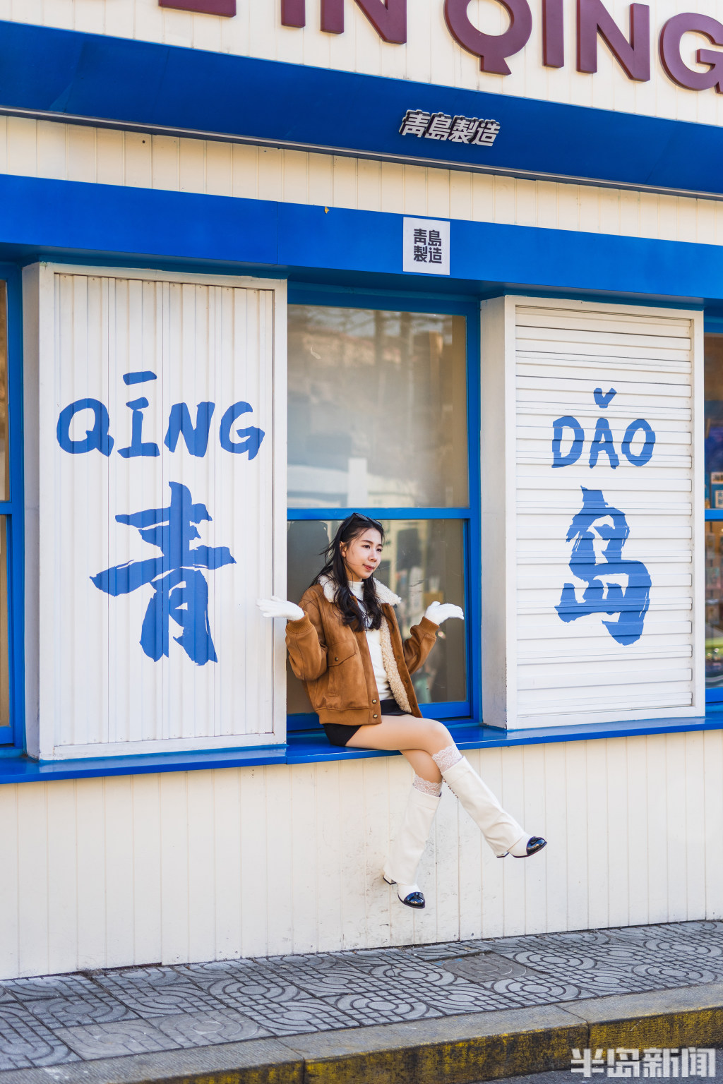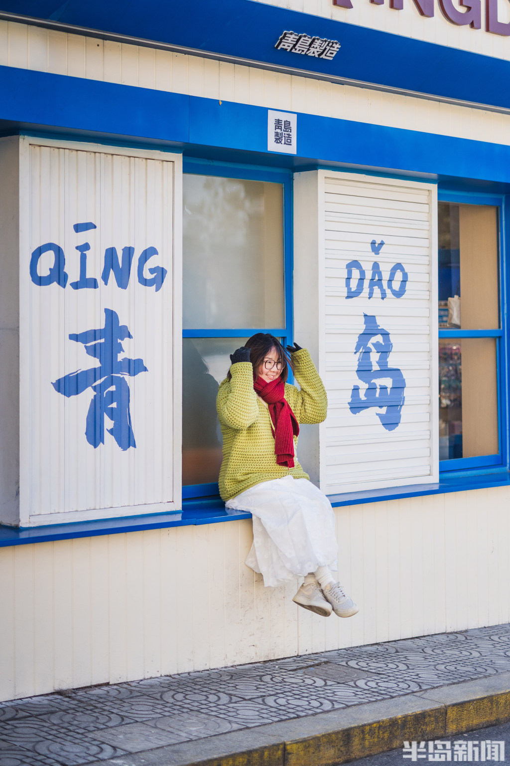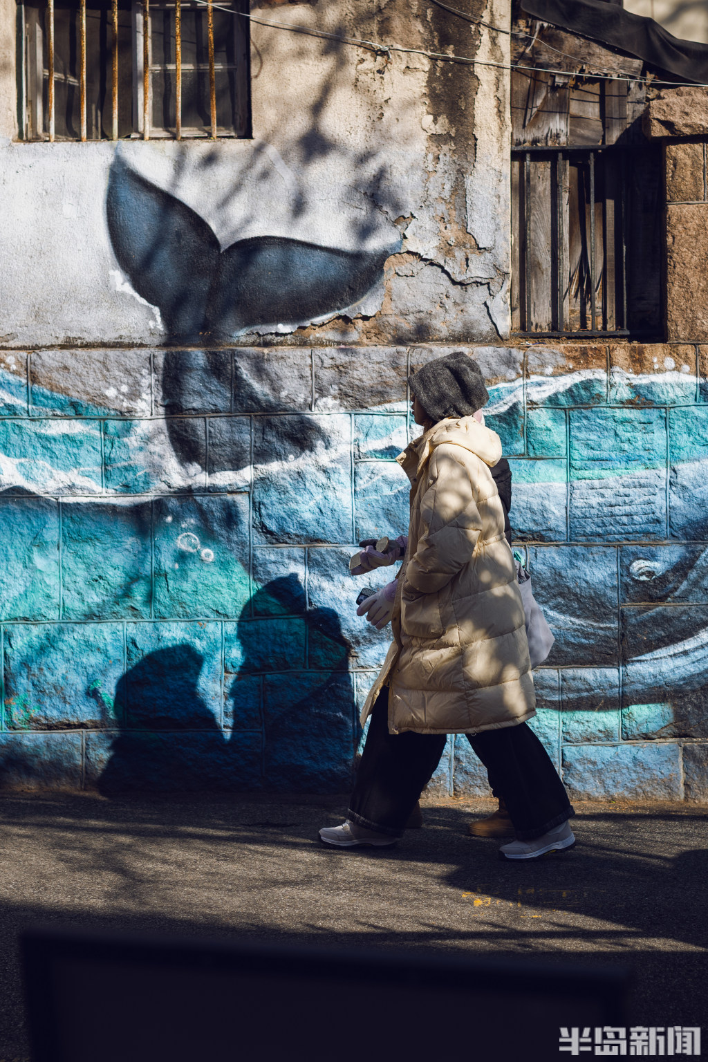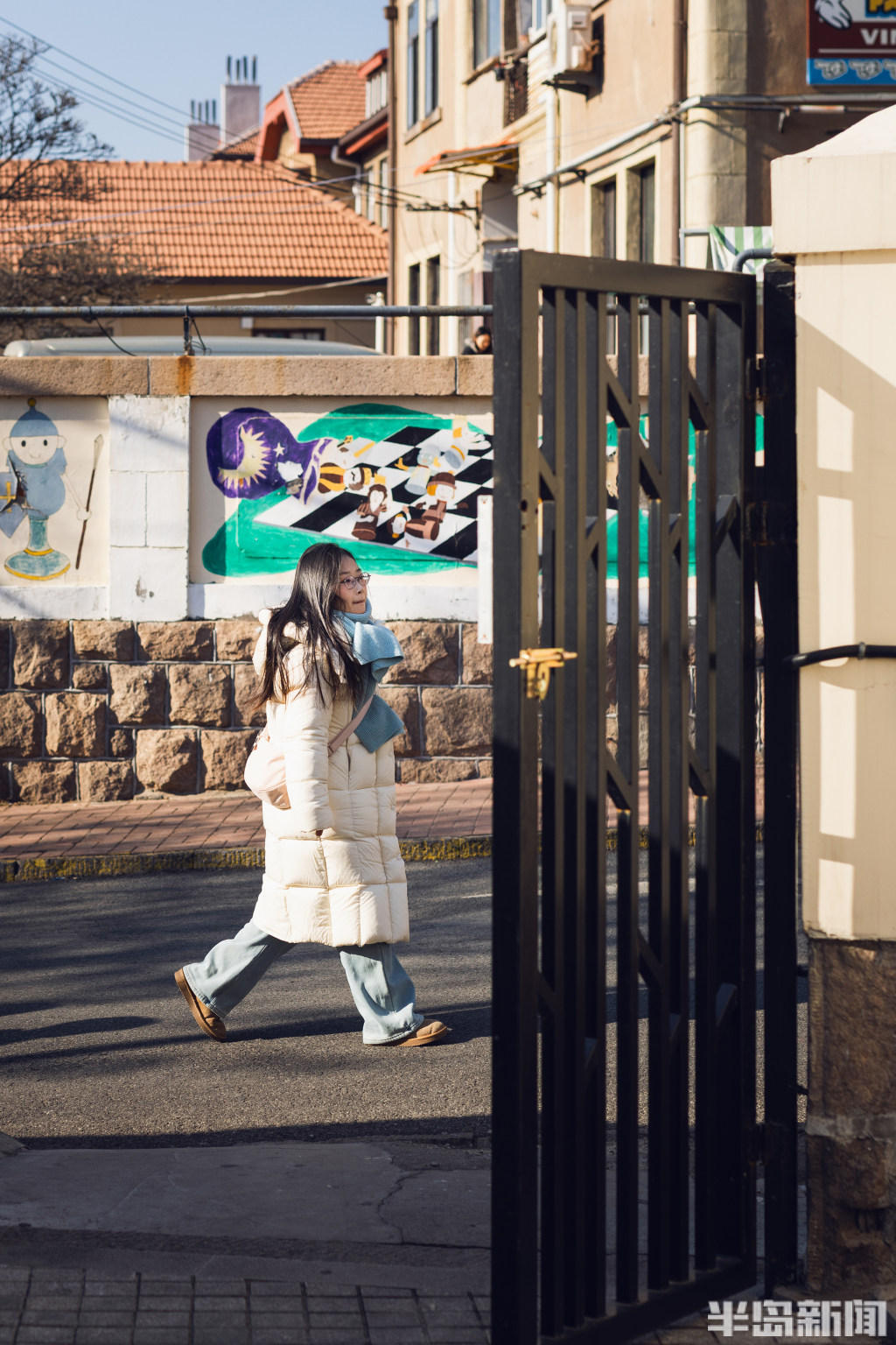 1月21日,青岛龙江路周边老城区里,不少游客在老街小巷里游玩打卡,感受冬日青岛魅力。