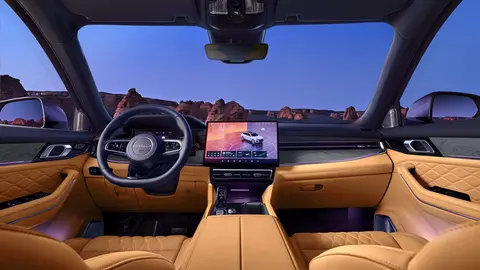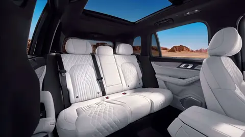 第二排座椅宽度为1366毫米,坐垫纵向长度540毫米,最大腿部空间为1130毫米(前排座椅调到最前,后排座椅调到最后,第二排座椅靠背到第一排座椅靠背距离)。同时,第二排座椅新增多功能中央扶手和小桌板,顶配车型具备三档加热与通风和8点式背部按摩功能。此外,车窗采用双层静音隐私玻璃和遮阳帘。