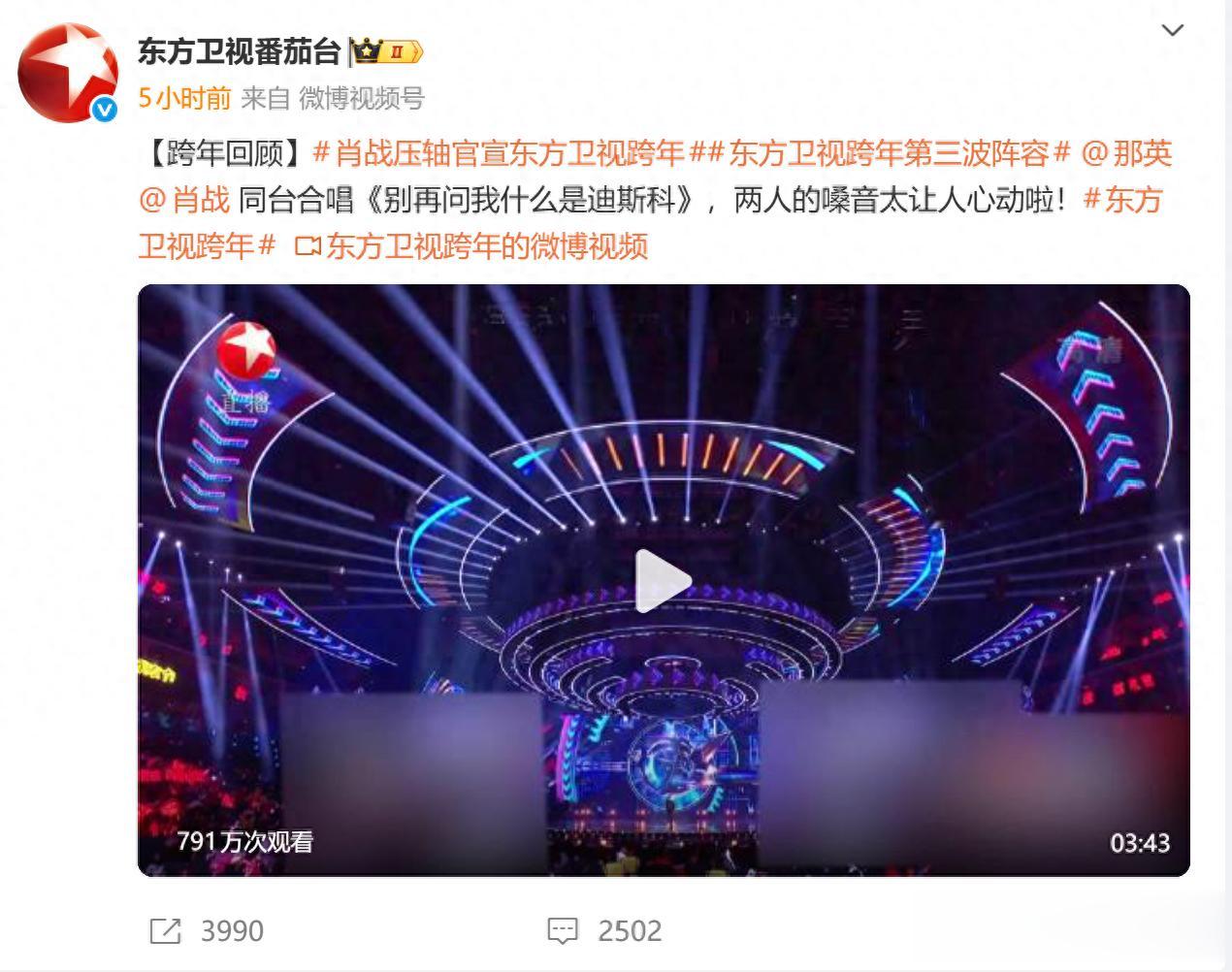 东方卫视基本可以锁定胜率了,就在今天,东方卫视官宣了肖战即将作为压轴嘉宾参加东方卫视跨年,不仅如此,东方卫视番茄台官博还连发6条有关肖战的“跨年回顾”,从《别再问我什么是迪斯科》,到《野子》,这是肖战时隔5年后再次回归东方卫视跨年。