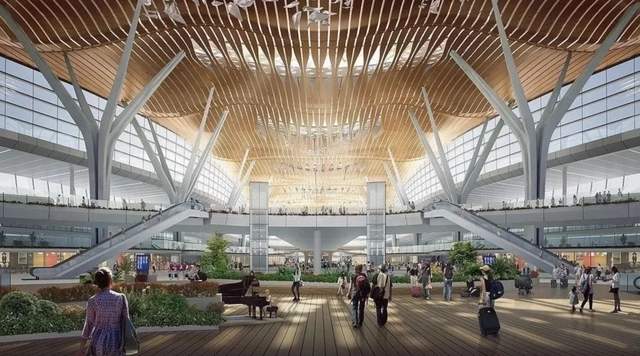 在内部规划上,航站楼通过垂直分层实现了功能的高效整合。从上至下分别布置国际出发、国内混流、国际到达、国内到达以及综合交通中心快速出发层,旅客流动更加顺畅。