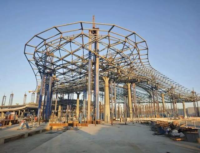 2月1日,由中建钢构负责钢结构深化设计、制造与安装的南段钢屋盖已完成整体提升,一片壮观的“钢铁穹顶”稳稳嵌于空中,标志着航站楼主体形态雏形已现、蓄势展翼。