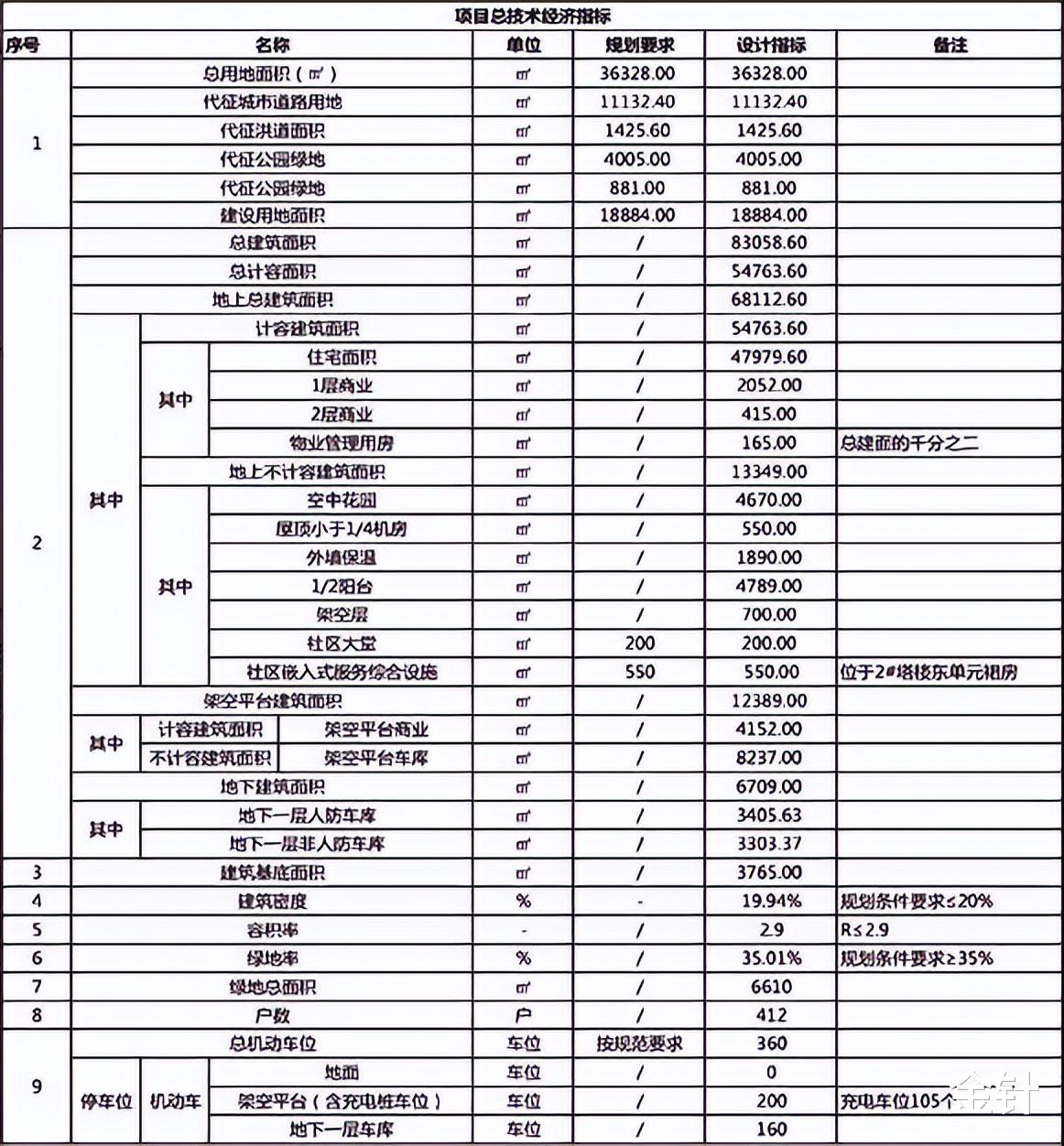 项目总技术经济指标 来源@兰州市自然资源局