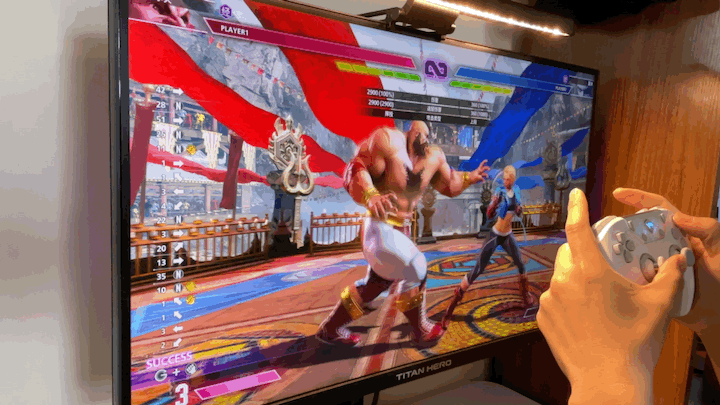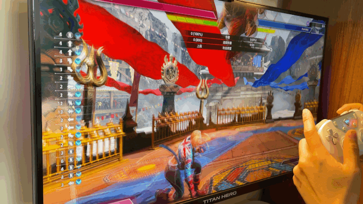作为一款大手手柄,机械师F1对于手大的友友们来说,确实提升了握持的舒适度及操作的框量。而微动按下去的“咔吧咔吧”的确认感觉,对于操作激烈且多指配合的格斗来说,相当的友好。比如说《街霸六》中,发招相对复杂老桑,我们同样的可打出近似街机摇杆的感觉。