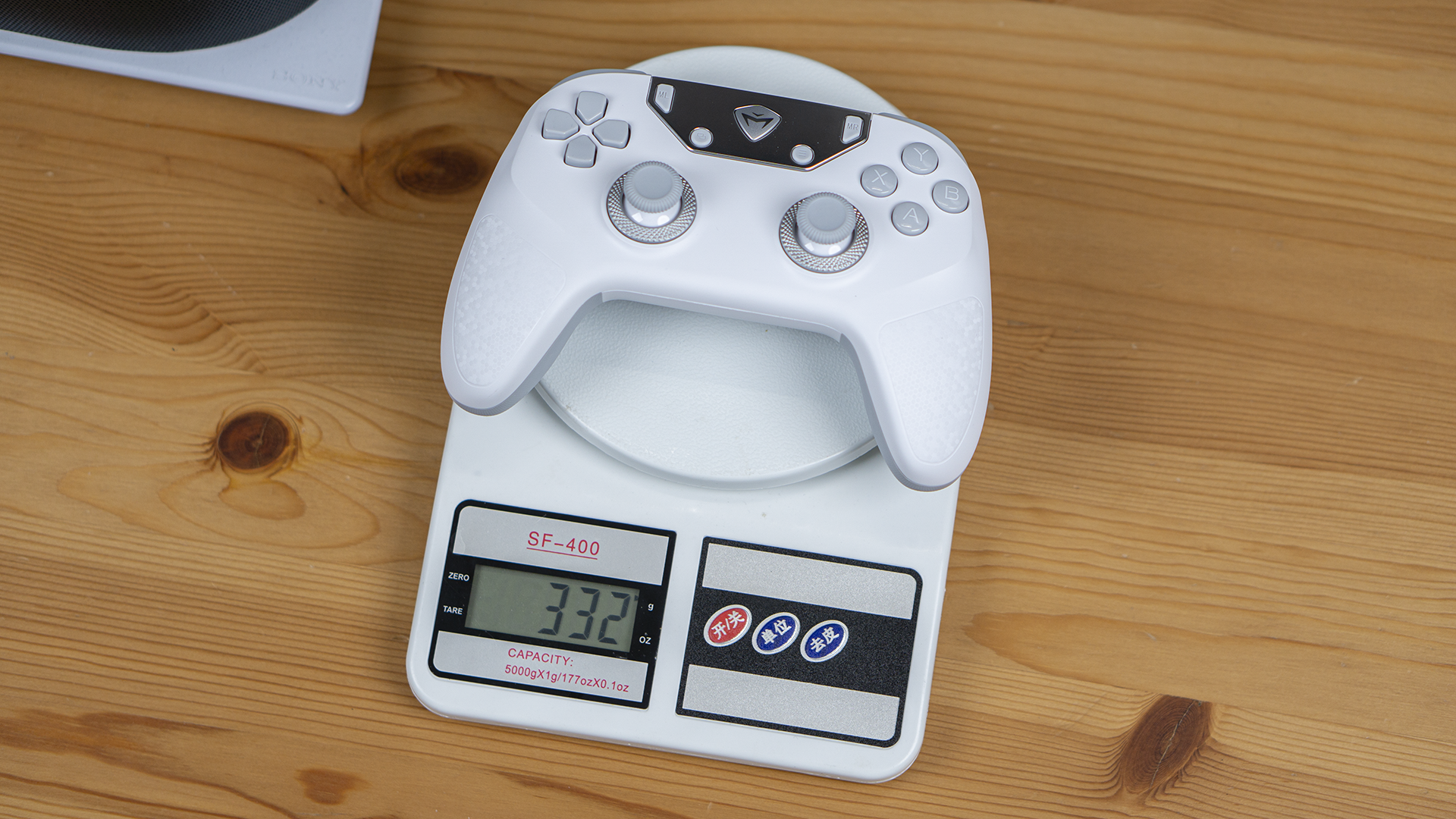 虽然它是一款PS布局的手柄,但真拿到手里的时候,第一个感觉就是“大”。我们也拿PS5的手柄做了一下对比,它们手柄的宽度基本一样,但细细比较就会发现,机械师F1在两侧向上收缩的弧度要小一些,在左摇杆齐平的情况下,它的ABXY要向外略扩一丢丢。