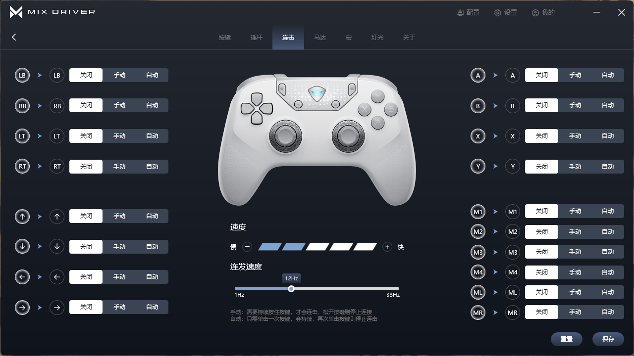 除了这些之外,机械师F1还支持专属驱动,我们可以根据自己的习惯进一步让手柄更适合自己。由于整体设置不难,且驱动设置简单明了,我们就不在此过多赘述,有兴趣的友友们可以直接放大截图(部分)。