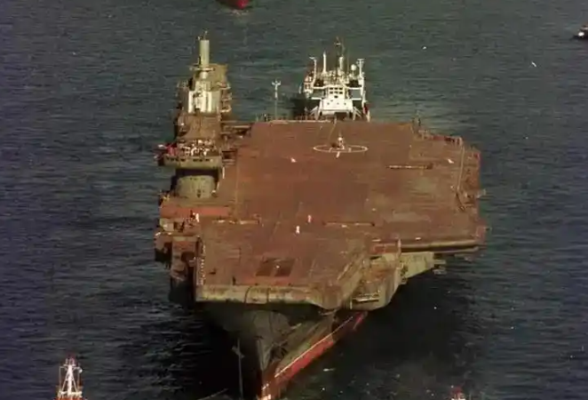 然而1991年苏联解体的历史巨变,让这艘仅完成68%建造进度的航母戛然停工,随后被划归乌克兰所有,由于乌克兰无力承担后续建造费用,这艘巨舰只能静静地停泊在船厂码头,在黑海的风雨侵蚀中逐渐锈蚀。