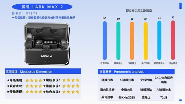 续航表现惊人,发射器单次续航12小时,充电盒总续航48小时,满足全天户外拍摄需求,无需频繁充电,彻底摆脱电量焦虑。兼容手机、相机等多设备,Type-C接口支持快充与固件更新,兼容性强,搭配猛玛生态设备操作更高效。总体来看,猛玛LARK MAX 2续航强劲、传输距离远、降噪实用,能应对各类复杂户外拍摄场景,是追求长续航与稳定传输用户的不二之选。