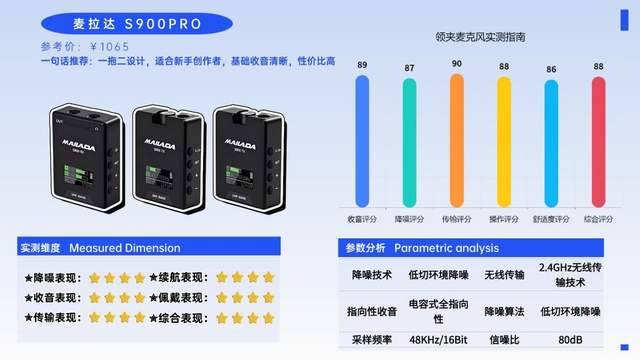 总体来看,麦拉达S900PRO收音清晰、降噪强效、操作便捷,是直播带货达人的优选,能满足直播互动与带货需求,性价比突出。