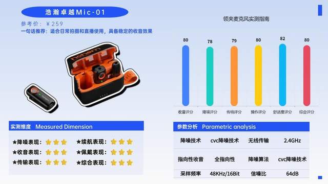 总体来看,浩瀚卓越Mic-01收音清晰、降噪实用、操作便捷,是新手创作者的理想选择,能满足日常vlog与短视频拍摄需求,性价比突出。