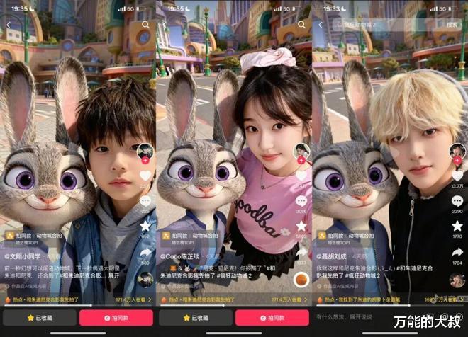 在抖音,出现一款叫做“动物城合拍”的AI特效!只要上传一张你的自拍照,就能自动生成一个和朱迪尼克合影照片为主的视频。