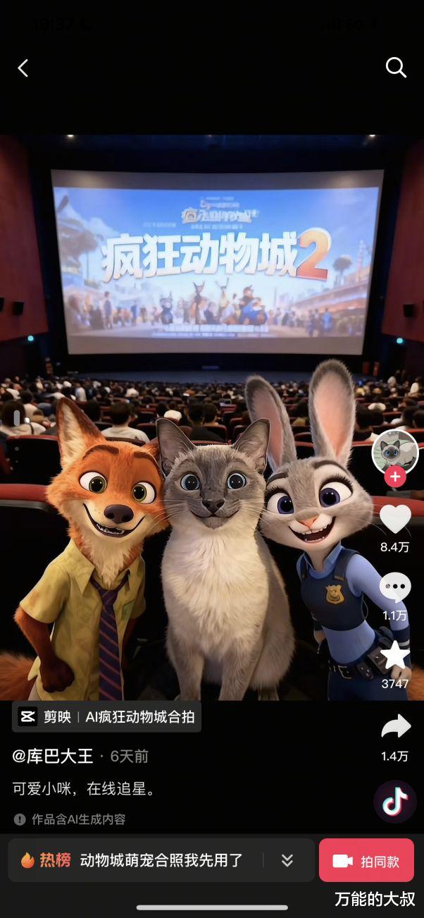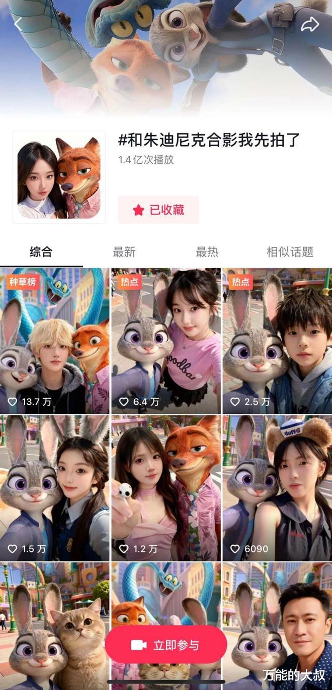 在抖音,和#疯狂动物城2AI合影#的相关话题播放量,接近4亿。