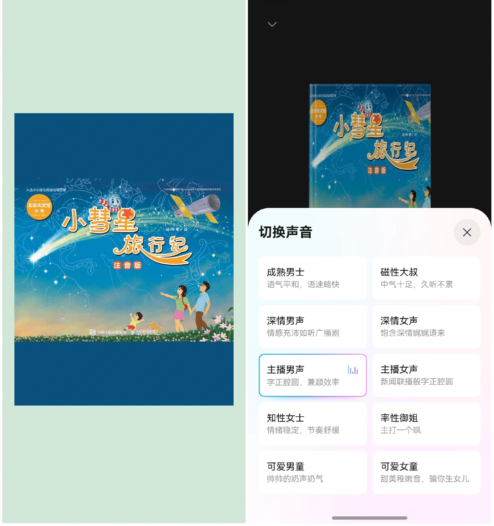 像我的小侄女刚上小学,正是对啥都感兴趣的时候,《小学乐趣书单》就很适合她,里面像什么《小彗星旅行记》、《孙悟空在我们村里》、《稻草人》等书是应有尽有,侄女一下子就被《小彗星旅行记》迷住了,以前给她讲科普,讲天文故事,她总觉得枯燥,听不懂,但这套书用彩绘和故事把天文和宇宙的奥秘讲得生动有趣,侄女捧着就不撒手。怕看多了怕累眼睛还可以用华为阅读的精品音色听书功能,那感觉就像真人在耳边讲故事。