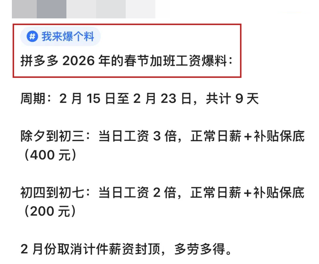 一、高薪加班背后:真的是“福利”,还是“定价”?最近,拼多多春节加薪的爆料引发热议:如果加班8天,到手收入几乎抵得上平时整月工资。华为等公司也常有类似情况,周末双倍薪资单日可达数千。
