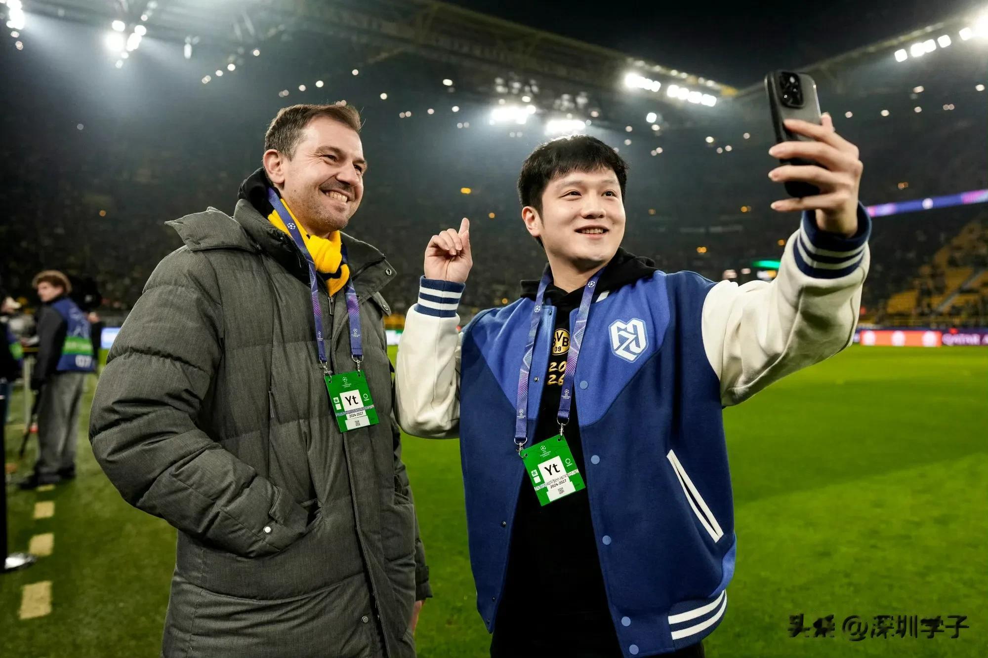 横又又又发樊振东观看足球赛的照片了。横活活地变成了樊振东的最大站姐,他自称最多照片的俱乐部。哈哈,最多照片的俱乐部配这个世界上最多照片的男人,好像正好。