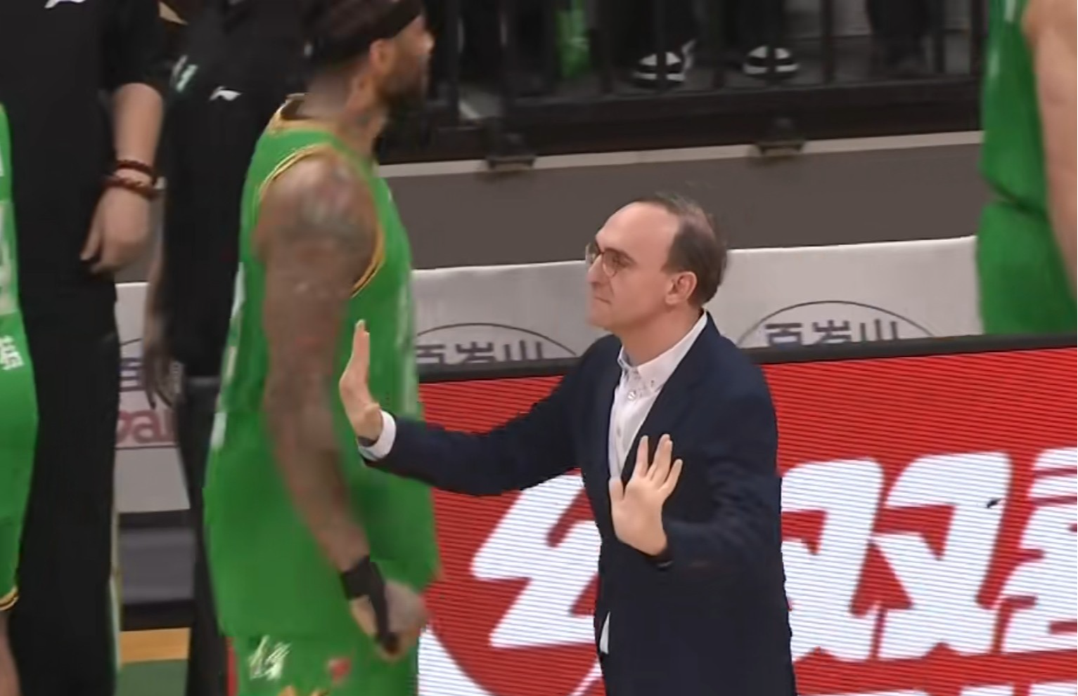 在通过录像回看之后,裁判前往辽宁队这边给主教练乌戈做了解释,随后吹了进球有效,却给了辽宁队替补席提前进场的技术犯规。