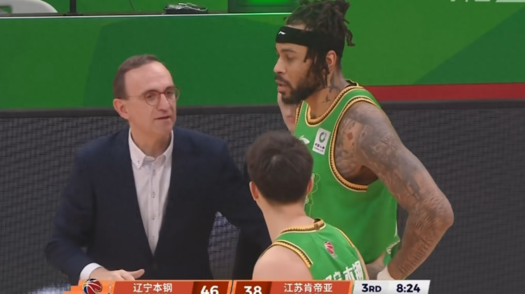 然而本场比赛,辽宁队却遭遇到江苏队强有力的对抗,虽然大部分时间领先,但分差始终没有拉开。最终辽宁队通过加时赛赵继伟超神的发挥,95:82大胜江苏,然而双方在最后时刻上演了一次戏剧性的一次判罚: