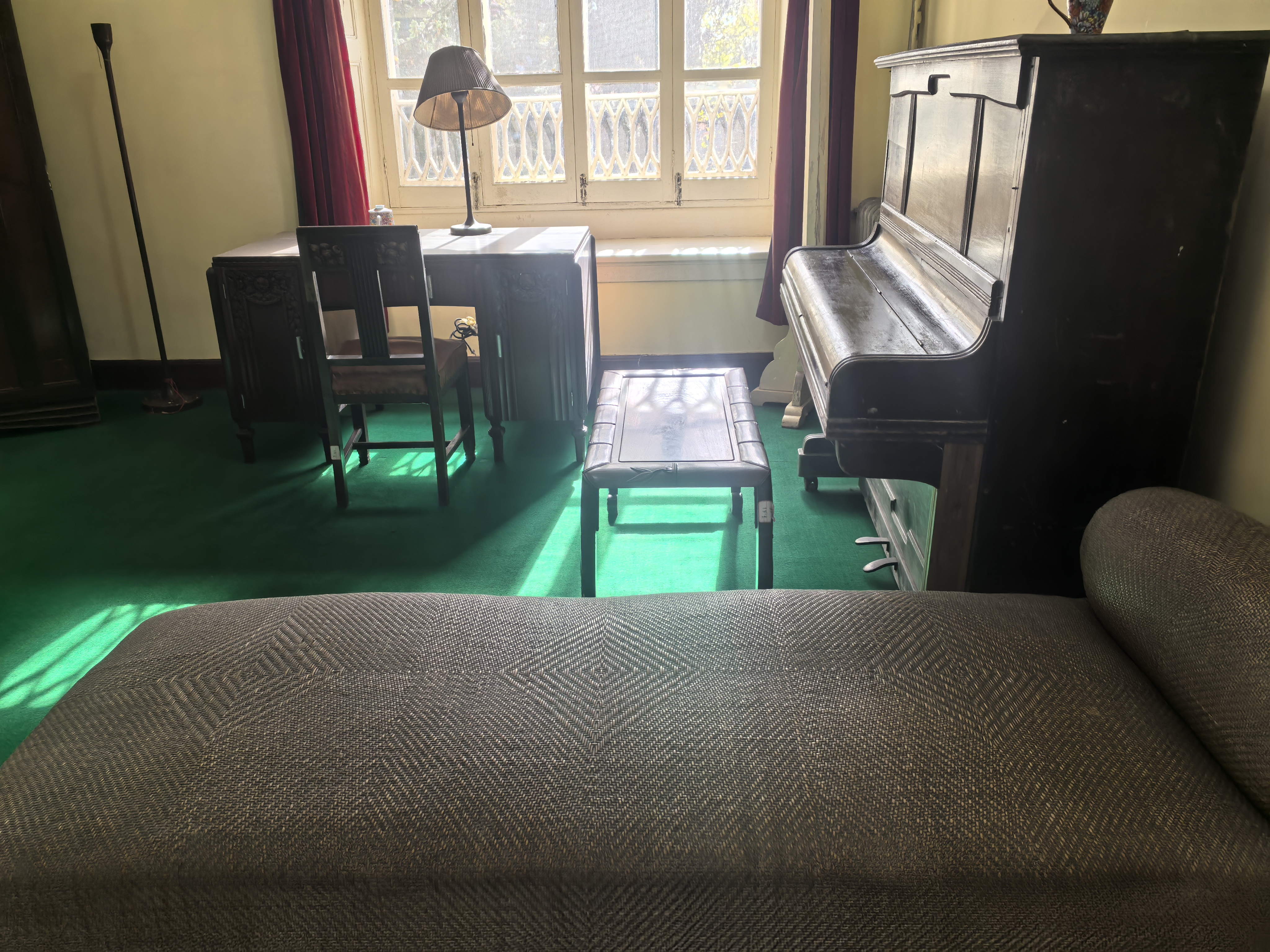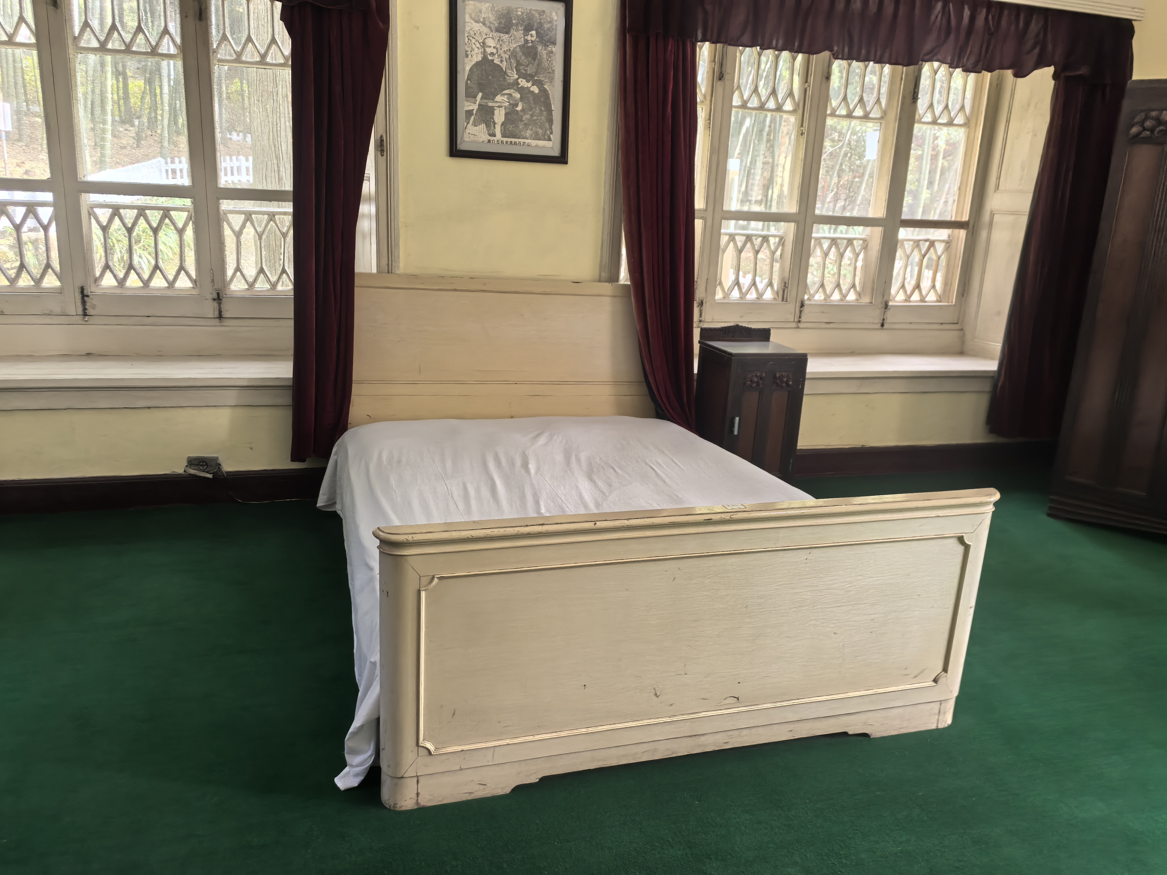 下午重点参观了美庐,这座有上世纪初由外国人设计建造的别墅,后来被宋美龄收购,作为他和蒋介石在庐山的住所,那时候蒋介石把庐山作为国民政府的夏都,夏天毕竟凉爽的庐山比闷热的南京那是好过多了。蒋介石经常在庐山美庐别墅接待国内外国政要,一些重要会议讲话也在庐山进行。据说蒋介石和宋美龄是分开住的,宋美龄住第1层别墅,蒋介石住第2层,因为他是比较传统的军人,喜欢早睡早起;而宋美龄在美国留学受西方文化影响,喜欢夜里工作学习看书,晚睡晚起,两个人生活习惯差异很大,只能分开住。现在别墅里面还保留了一些宋美龄和蒋介石使用过的一些生活用具,比如陶瓷碗茶杯,还有通用公司制造的国内第1台冰箱。他们两个人前前后后在美庐别墅住了12年。