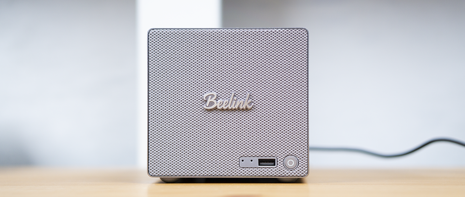 虽然小巧,但是这台NAS的配备还是相当有诚意的。它使用了Intel N95的处理器,有着25W的满血性能释放。内置了12GB LPDDR5的内存。它的前面为金属材质的格栅+金属铭牌的设计,右下有一个复位孔、一个CLR CMOS孔、一个USB-A(10Gbps)及一个电源开关键。