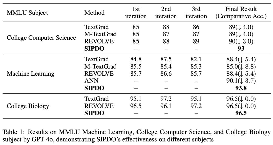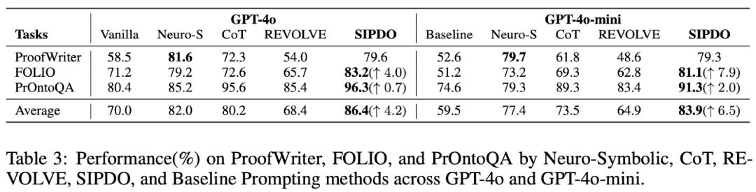 此外,论文还在 MMLU(College CS, Machine Learning, College Biology)以及 FOLIO / PrOntoQA / ProofWriter 等结构化推理任务上的对比与提升。SIPDO 的独特点在于:让系统主动生成 “刚好能打穿当前 prompt” 的合成样本,再用失败反馈驱动 prompt 修复,并通过难度递进持续加压。