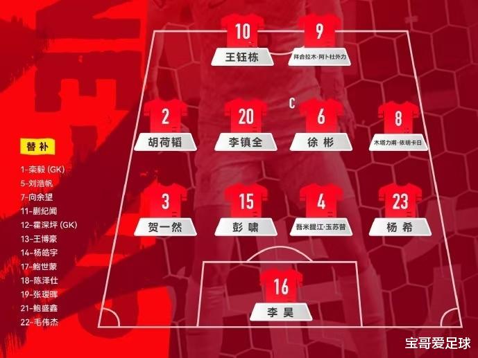 U23国足主教练安东尼奥继续以442阵容出战,门将李昊,左后卫贺一然,右后卫杨希,中后卫彭啸和玉苏普,中场从左到右依次是胡荷韬、李镇全、徐斌和木塔力甫,前锋王钰栋和拜合拉木,上一场和泰国U23的比赛相比,李镇全和杨希分别取代蒯纪闻和杨皓宇首发出场。U23国足首发11人平均年龄20.5岁,总身价528万欧元。与此相比,乌兹别克斯坦U23首发11人平均年龄只有19.5岁,总身价232万欧元,还不到U23国足的一半。