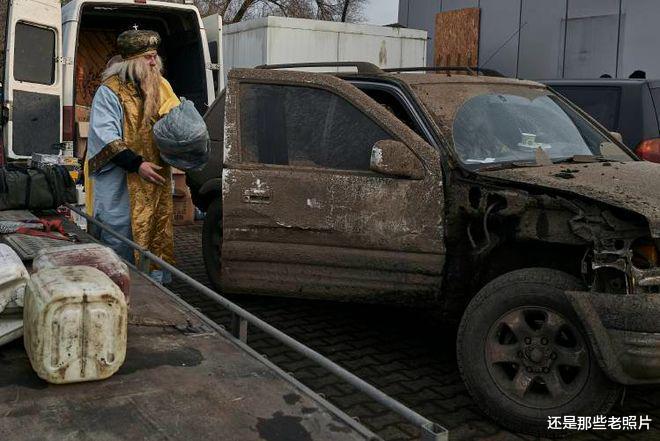 2022年12月25日,在乌克兰顿涅茨克地区,一名装扮成圣尼古拉斯(圣诞老人的原型)的志愿者准备向士兵分发圣诞礼物。