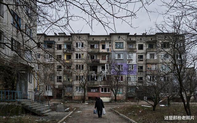 2022年12月21日,在乌克兰顿涅茨克地区索莱达尔,一名平民走过严重受损的居民楼。真的是,战争来临,生灵涂炭。