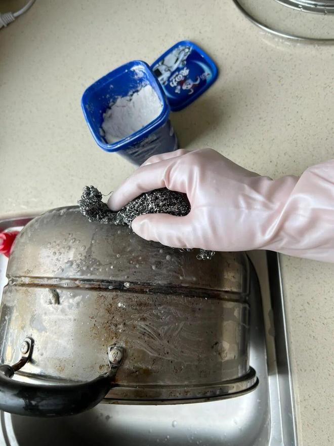 正经人:用钢丝球+清洁膏反复刷,刷的过程中得用点力气才行。否则,不仅很难刷干净,还特别费手。