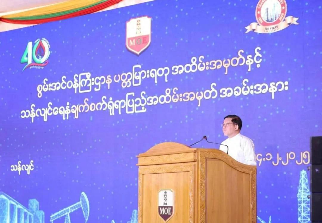 12月24日上午,缅甸国家代总统在仰光省沙廉镇第一炼油厂(丹林)举行的能源部成立40周年庆典、丹林炼油厂成立100周年暨能源博物馆开幕仪式上发表了讲话。