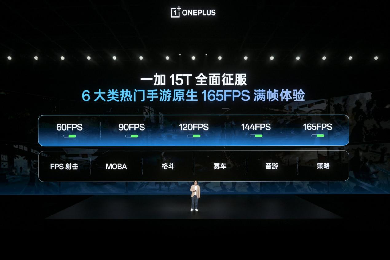 在第五代骁龙 8 至尊版移动平台与独家自研芯片级游戏技术新一代「风驰游戏内核」加持下,一加 15T 成为小屏手机中唯一支持 165 超高帧游戏体验的产品。相比普通 120 帧,165 超高帧每秒可多输出 45 帧画面,显示速度提升 27%,操作响应时间缩短 10ms,操控速度提升 17%,能够助力用户在瞬息万变的对战中更快捕捉敌人信息,获得更大竞技优势。一加 15T 支持《和平精英》、《三角洲行动》等主流 FPS 射击类游戏原生 165 超高帧模式,同时支持MOBA、格斗、赛车、音游、策略共六大类热门手游原生 165 帧超高帧率,引领小屏手机游戏体验进入超高帧时代。