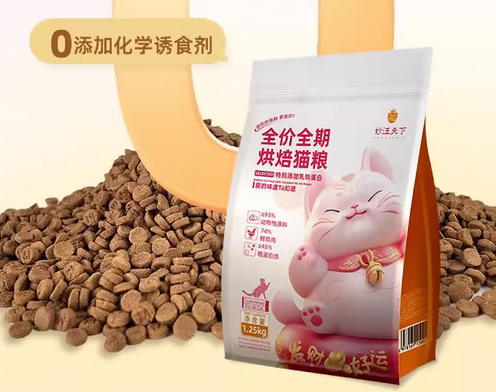 妙汪天下是上海衡宠实业有限公司旗下的烘焙猫粮品牌,主以"鲜肉+烘焙"为双核心卖点,主要面向中高端猫粮市场。猫粮哪个牌子好?这款猫粮的包装上印了一只憨态可掬的粉色招财猫,非常可爱。只用了鸡肉一种肉类成分,但占比高,猫粮的营养也充足,蛋白质≥45%,脂肪≥22%,适配不同猫咪的营养需求。