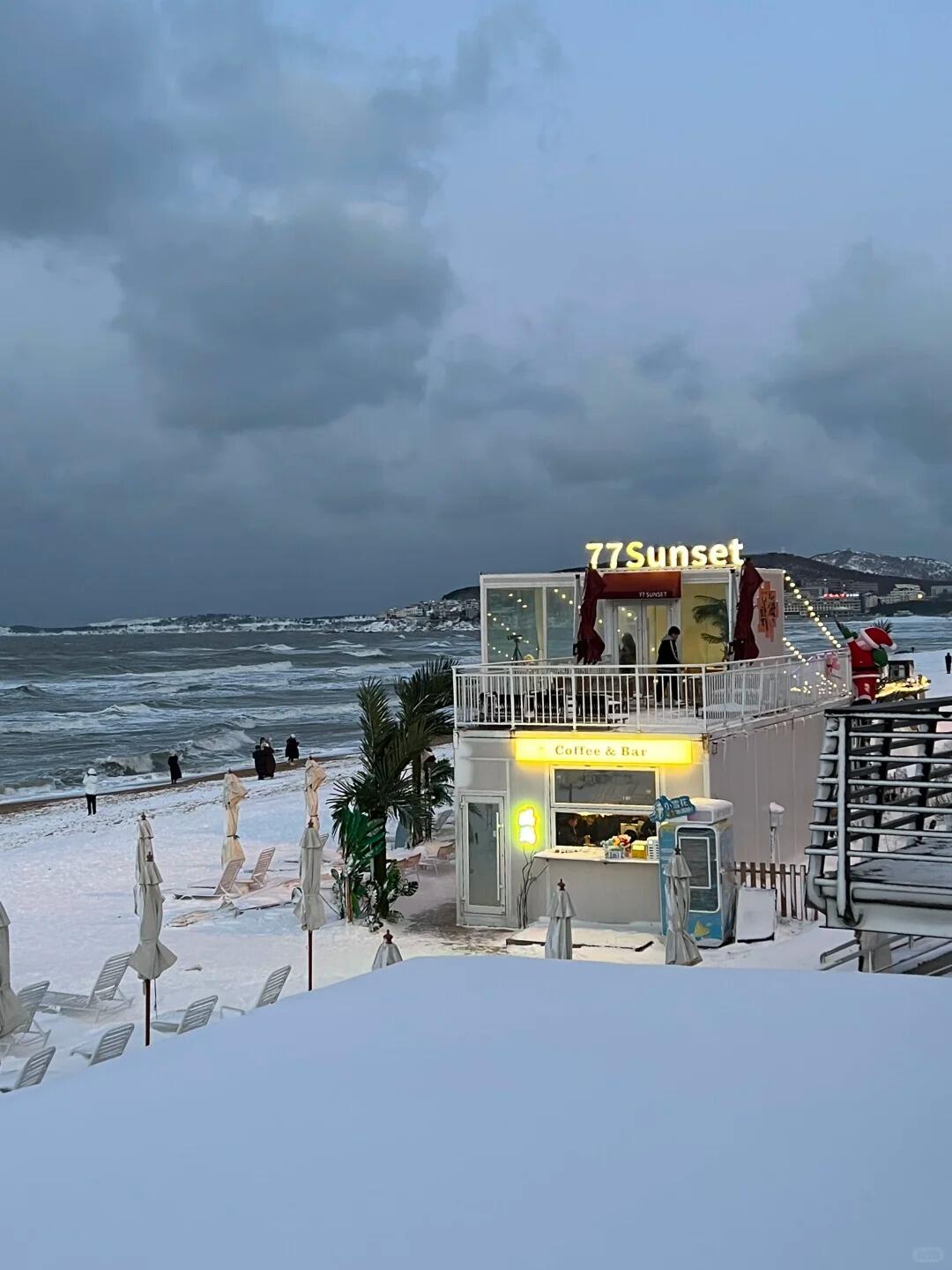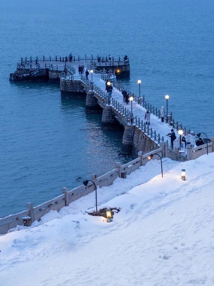 已经开始下大雪了,准备来威海的姐妹赶紧冲吧!目前威海的温度大概在0度左右,是需要穿羽绒、保暖内衣或者毛线衣一类的衣物