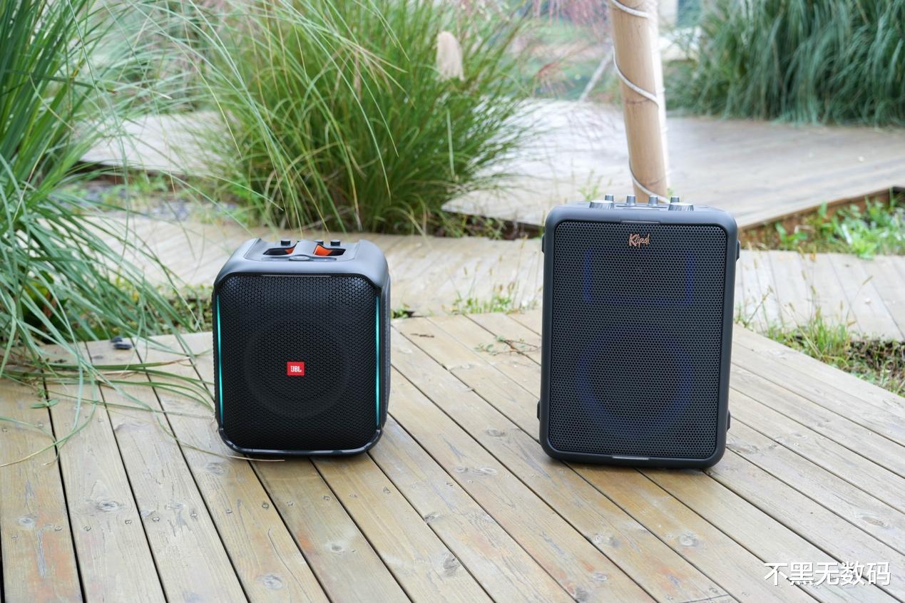 其实,将这两款音箱摆放在一起就可以很明显得感觉到体积上的差距,杰士的体积显然会更大,设计语言也相对更加粗犷,更有张力,我个人觉得这样的外形更加符合户外大场景下的氛围需求。再来看JBL音乐战将的外形线条显然会更加圆润,尺寸相较于杰士Vegas应该要小1/3,这样的好处是可以桌面也可以直接放在草地上,甚至还可以放在室内使用,通用性会强一些。