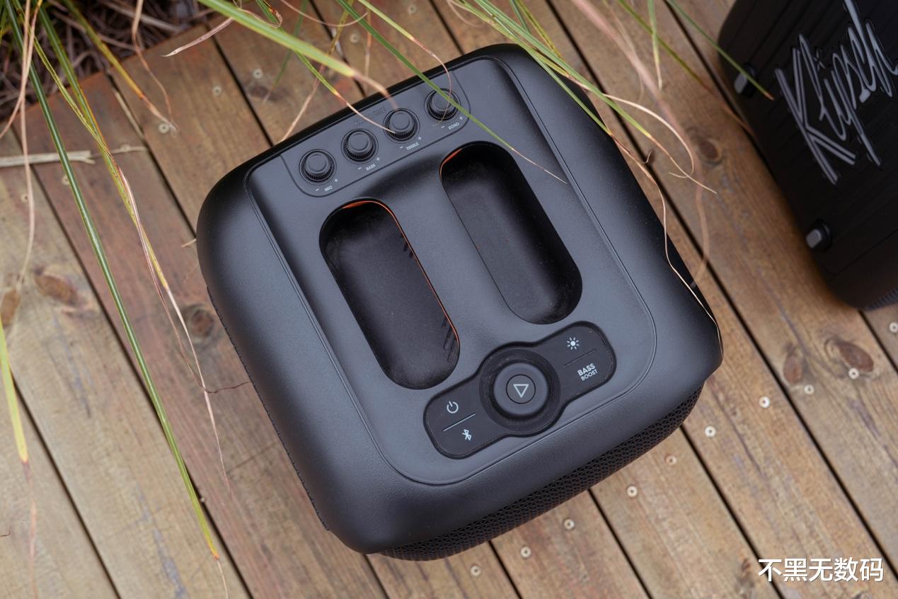 JBL 的按键就比较简洁,以实用为主,基本功能都能快速实现。不过需要吐槽一下的就是这个半封闭的提手设计,内部的灰尘真有点不好清理。