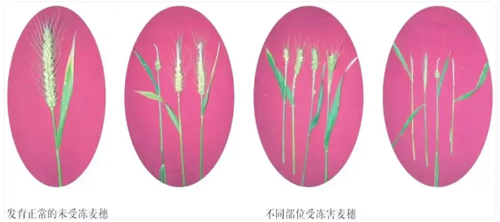 小麦:茎基部、根系细胞膜受损,细胞内水分、养分外流,轻则叶片白尖、黄化,重则茎基部腐烂、根系坏死,晚播弱苗(2~3 叶)抗寒能力差,可能整株冻死;降温前部分地区气温偏高,小麦处于 “半生长状态”,对低温敏感度翻倍。