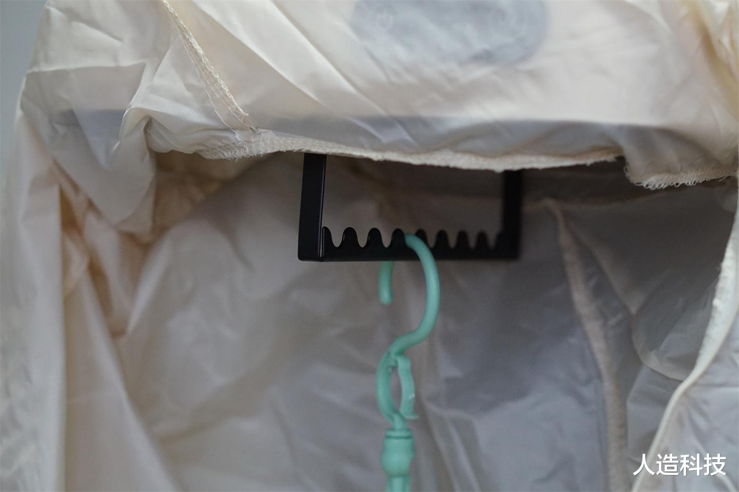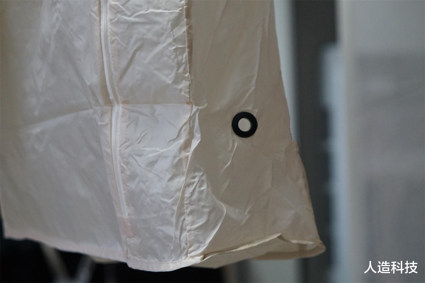 宫菱烘干机开启后几秒钟袋子就鼓起来了,牛津布袋子上设置了多个排气孔,烘干机刚开启和运行一段时间后我都用在排气孔处感受了下,温度变化并不大,可见烘干机的密闭性相当好,干衣效果更好。