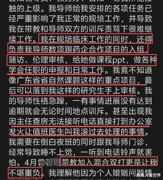 据遗书描述,作为临床型硕士,她本应以规培为核心,却长期承担导师安排的大量非临床事务:包括多个药企合作项目的入组与随访、伦理材料准备、学会任职申报,甚至参与省级自然科学基金课题的审核工作。这些任务与其规培职责严重冲突,导致她在临床带教与导师之间“横竖都是挨骂”——因处理导师事务缺席查房被批评,又因值夜班未能及时接听电话被斥责“滚过去”。