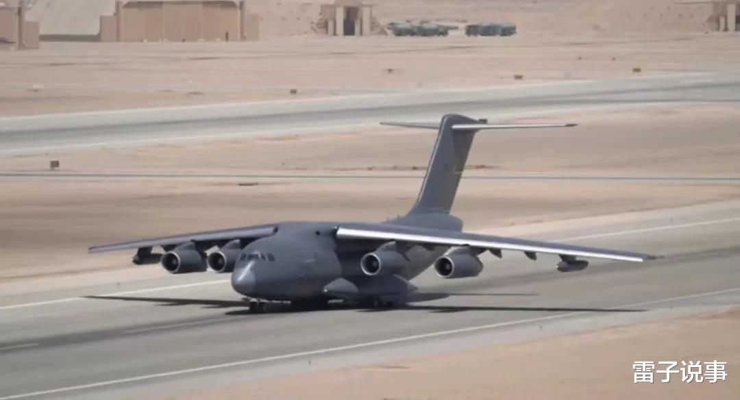 中国运-20大型运输机降落在中东地区。