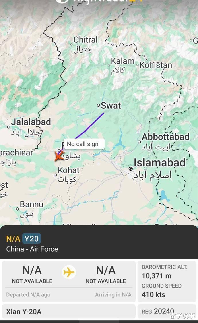 在前往黎巴嫩之前,这架运-20飞机首先在巴基斯坦和阿联酋进行了中途停留。