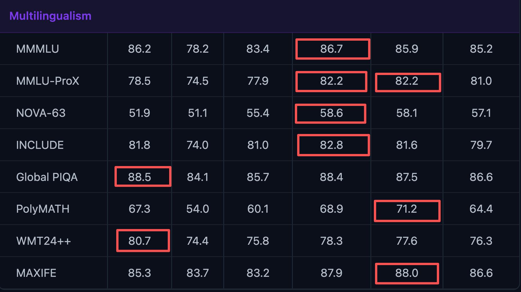 Qwen3.5-27B(Dense)主打轻量化部署,工程实用度高,交互、编程、长文本、数学拔尖。